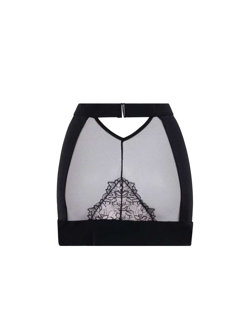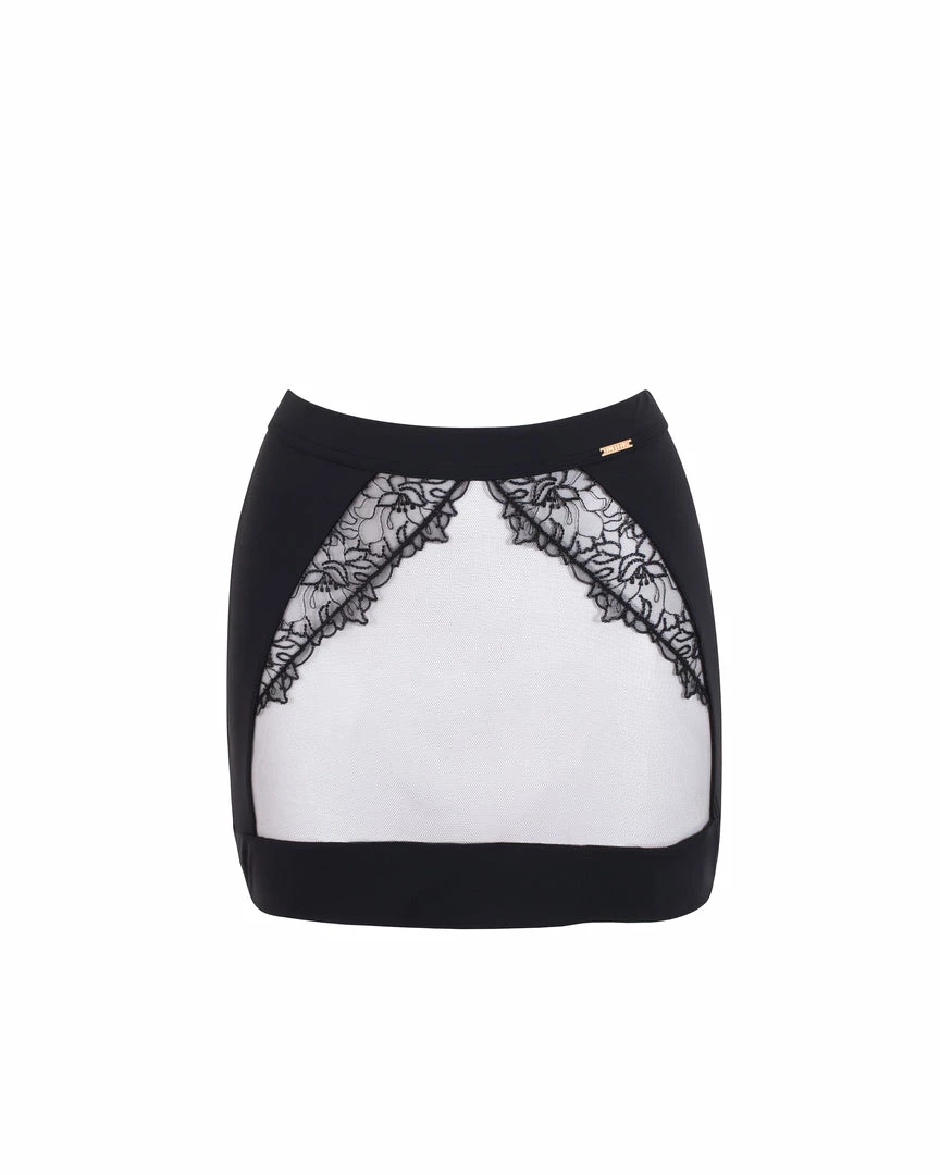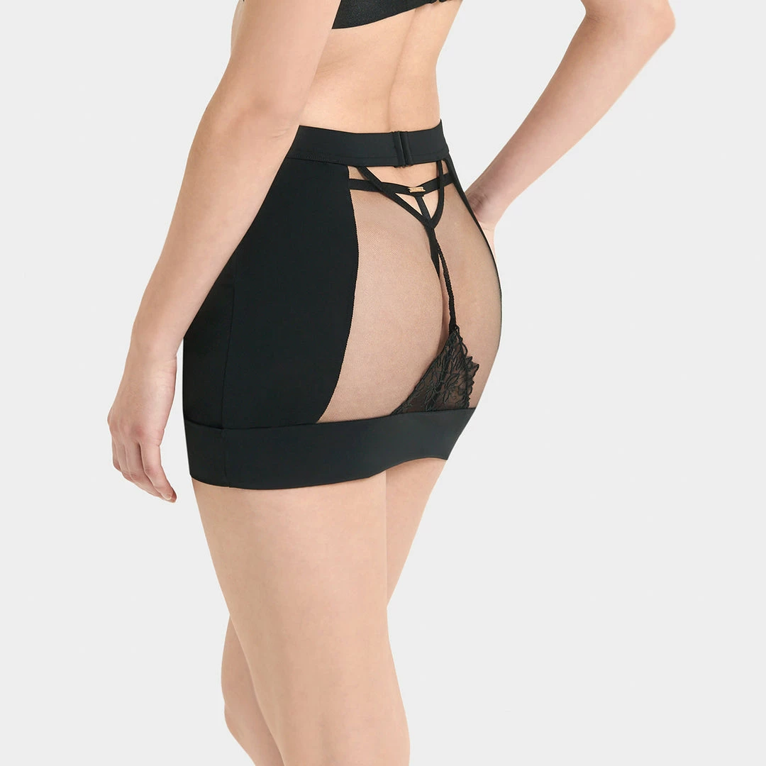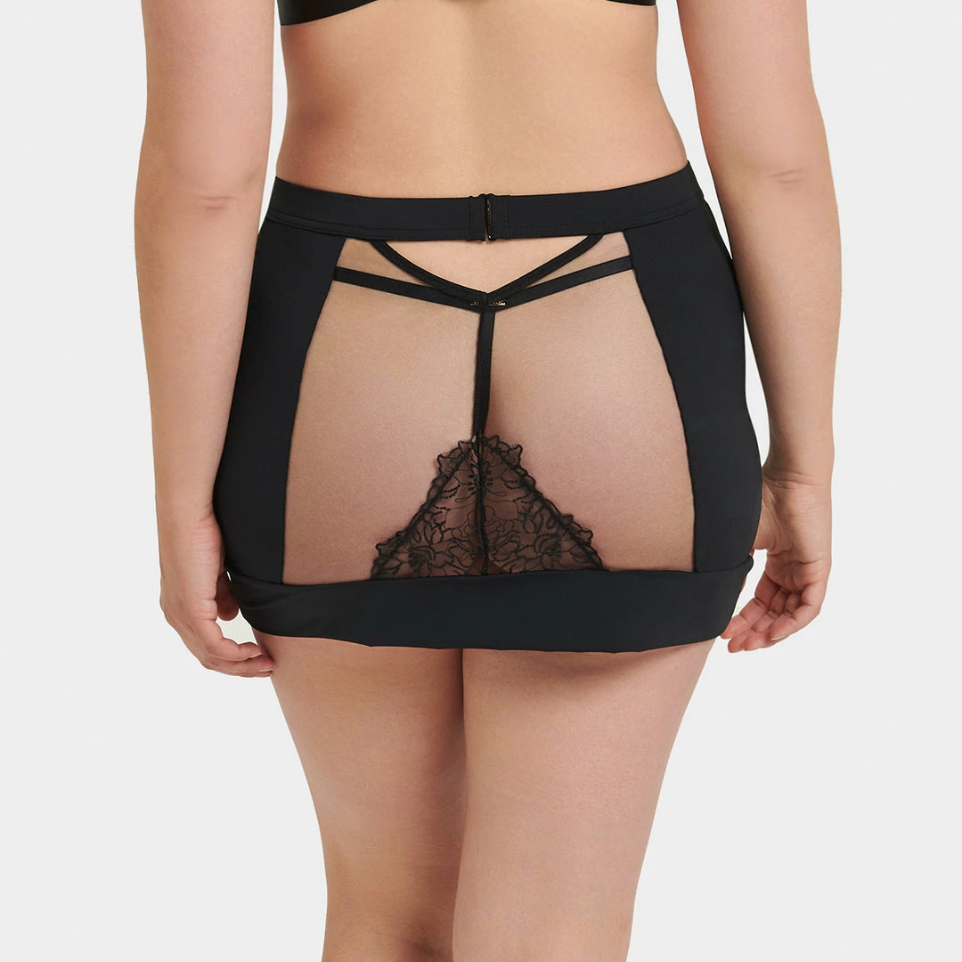 Bluebella keeps pushing boundaries in the lingerie world, and the Alanna skirt is a perfect example of just that. This provocative mini features soft stretch, semi-sheer mesh and intricate lace, creating a flattering silhouette with our signature provocative streak. Experiment with Alanna’s styling potential, slipping the matching brief or thong from the collection underneath it.