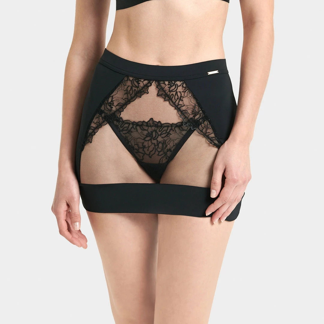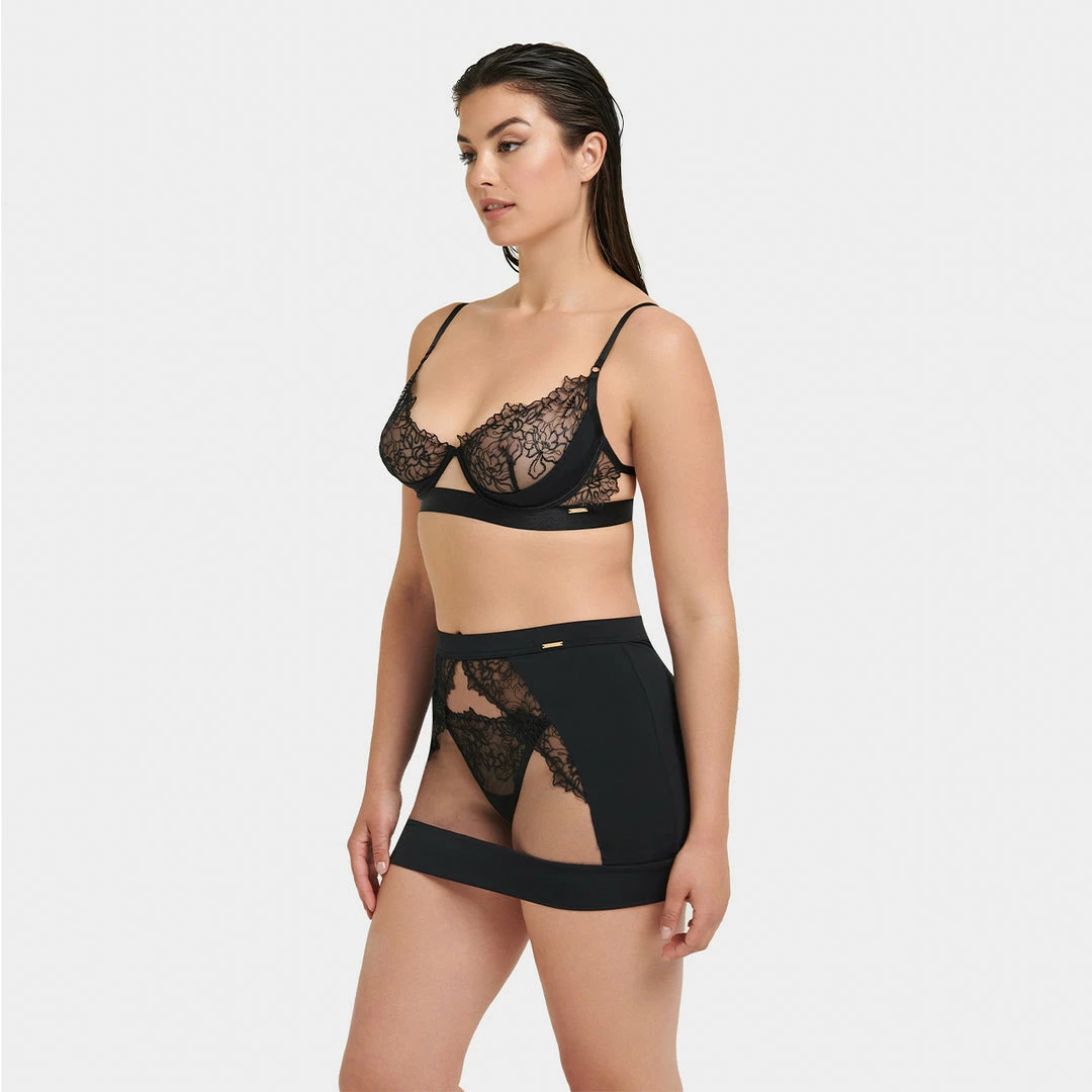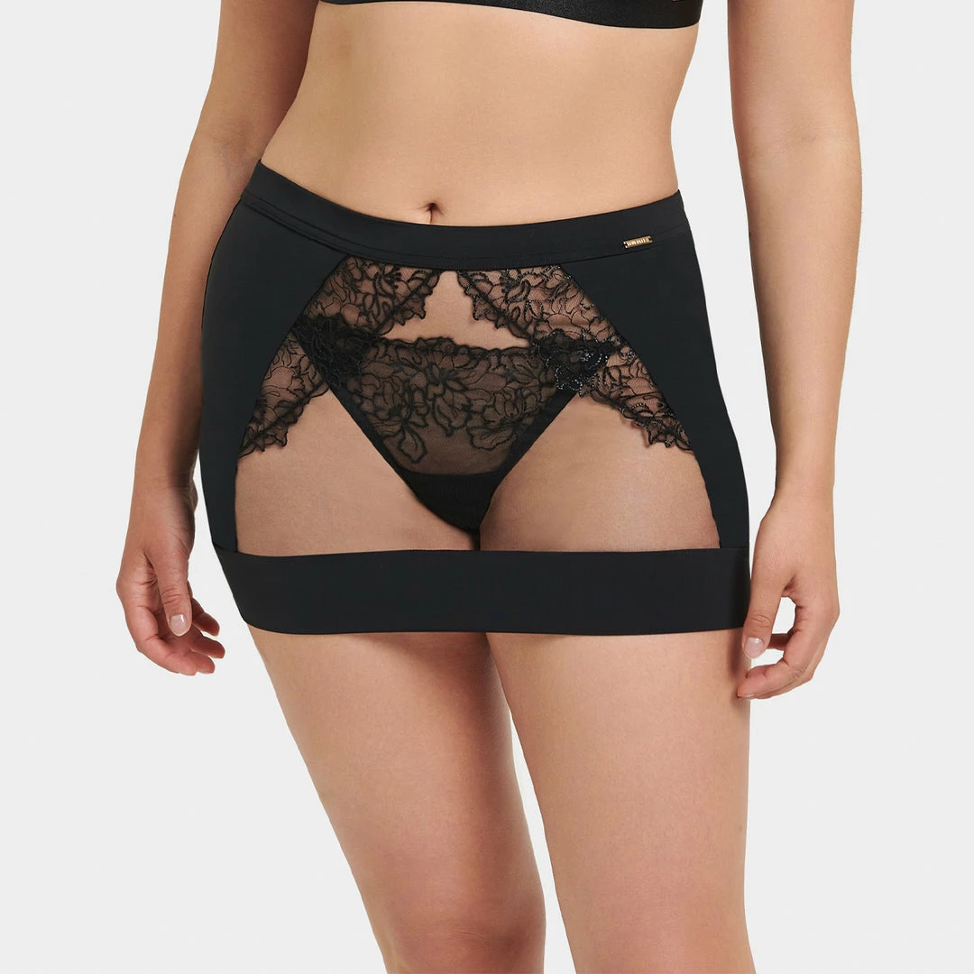 Bluebella keeps pushing boundaries in the lingerie world, and the Alanna skirt is a perfect example of just that. This provocative mini features soft stretch, semi-sheer mesh and intricate lace, creating a flattering silhouette with our signature provocative streak. Experiment with Alanna’s styling potential, slipping the matching brief or thong from the collection underneath it.