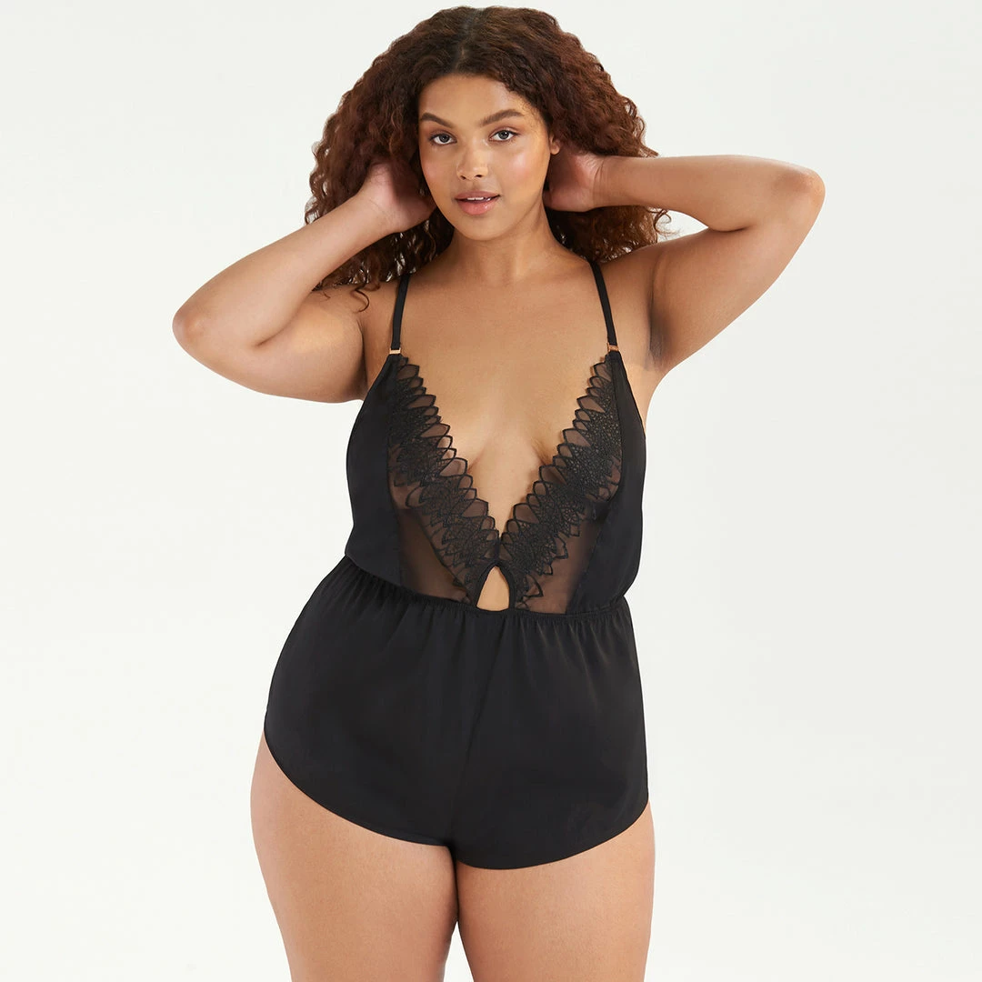 This sleek, chic teddy is here to reinvent your understanding of loungewear. With a plunging neckline embellished with embroidered mesh, Alina looks just as good with your favourite outerwear as she does worn alone.