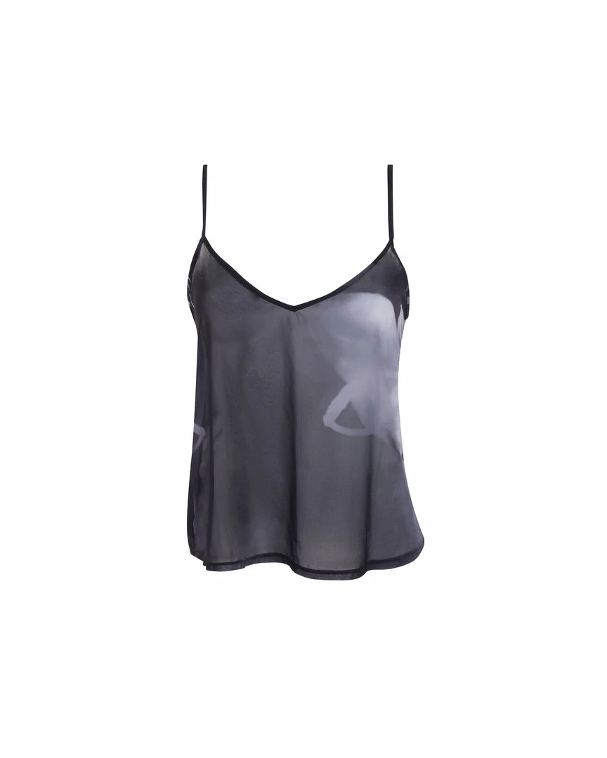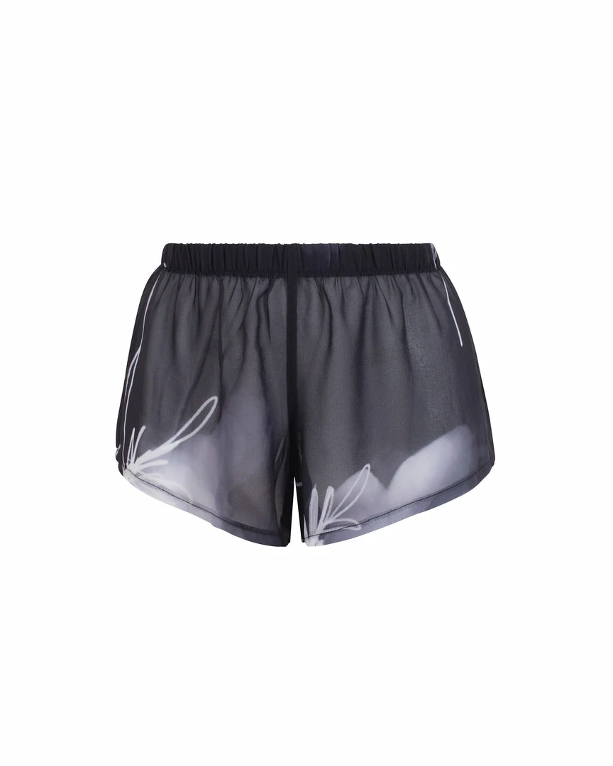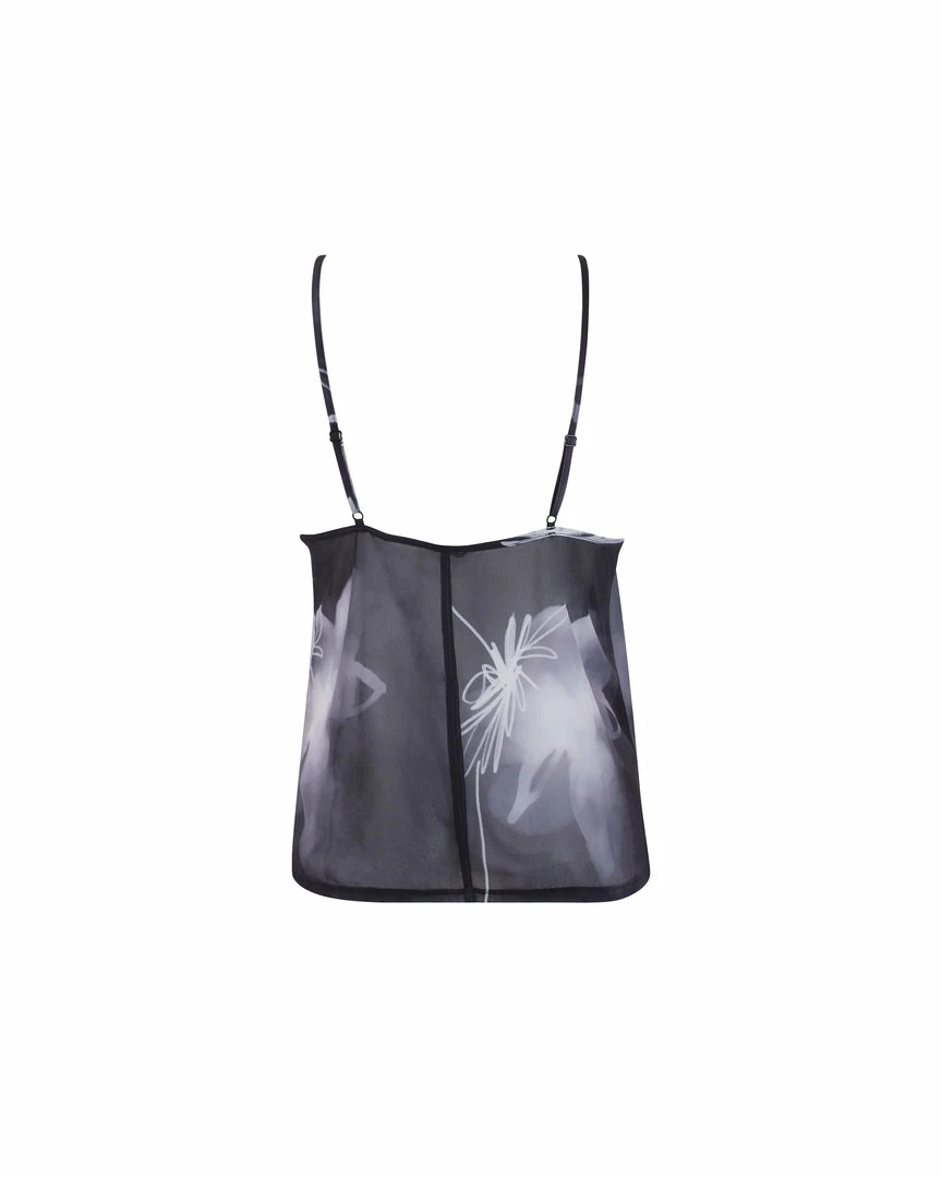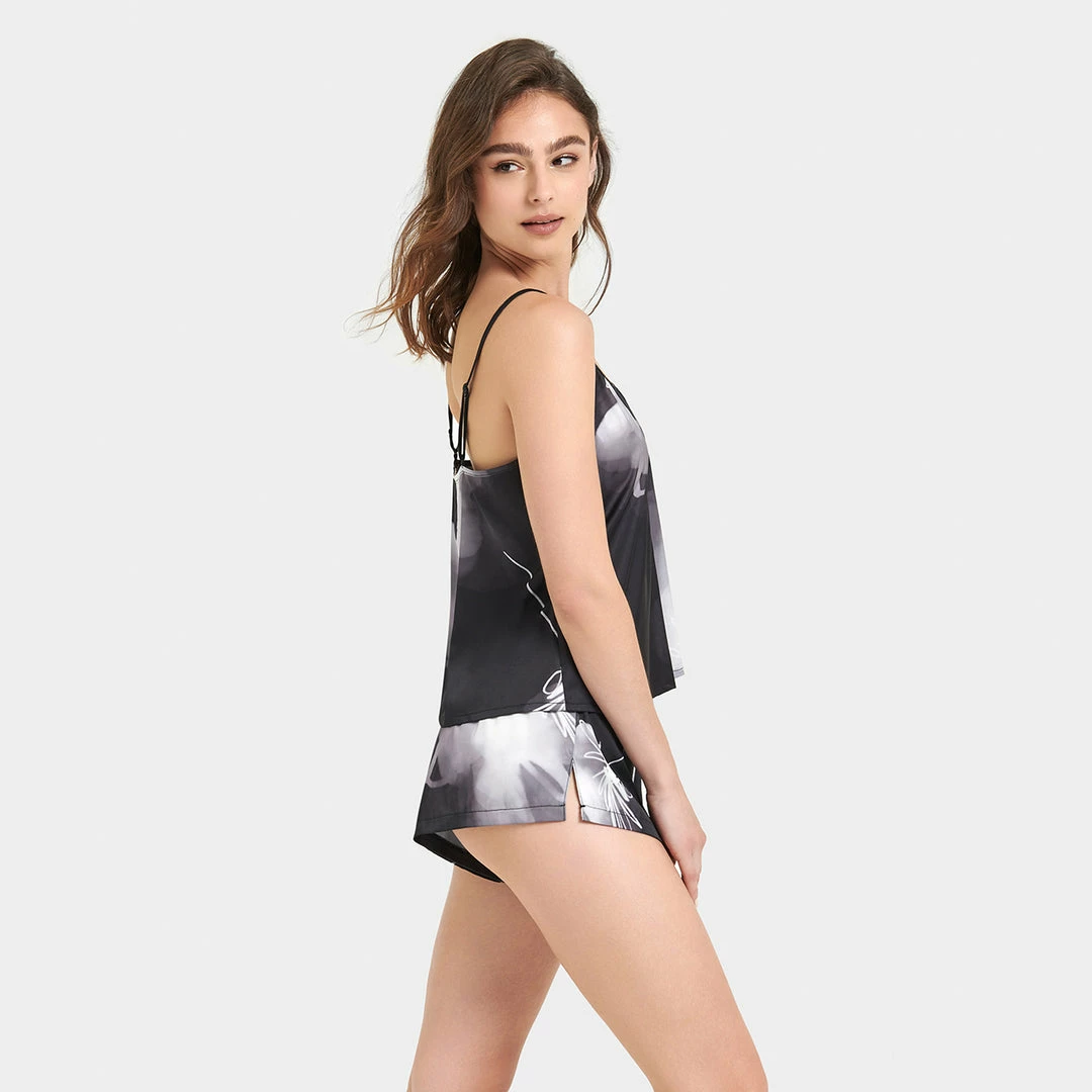 Bring a luxurious mood to your loungewear edit with the ethereal Camille cami and short set. This delicate, semi-sheer duo features an abstract print and a flowing silhouette, lending a distinctively seductive note to those moments of relaxation. Slip it over your favourite lingerie or wear solo to fully unleash its provocative undertones.