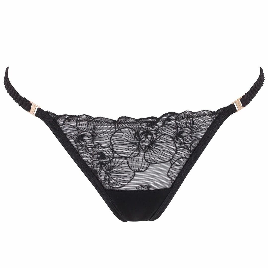 Everything on the Celeste thong is designed to make a lasting impression. From the timeless hue and the expertly embroidered mesh structure to the glamorous gold-tone hardware and the comfortable bamboo gusset, this feminine style makes the most of its minimal construction, ensuring a daring addition to your top-drawer edit. Style it with the matching Celeste bra to see it at its best.