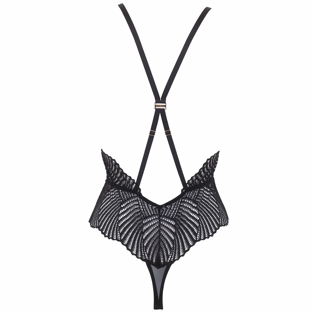 The Iris body is guaranteed to make a lasting impact when worn solo or as a clever layering piece, striking the perfect balance between sultry and sophisticated. The Art Deco-inspired lace organically follows your body, while the alluring straps, joined by gold-tone hardware to the reverse, provide not only comfort but also a finish on a distinctively enticing note.