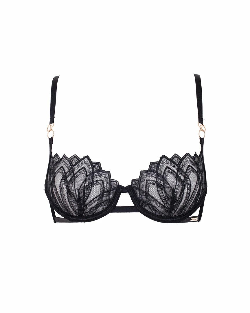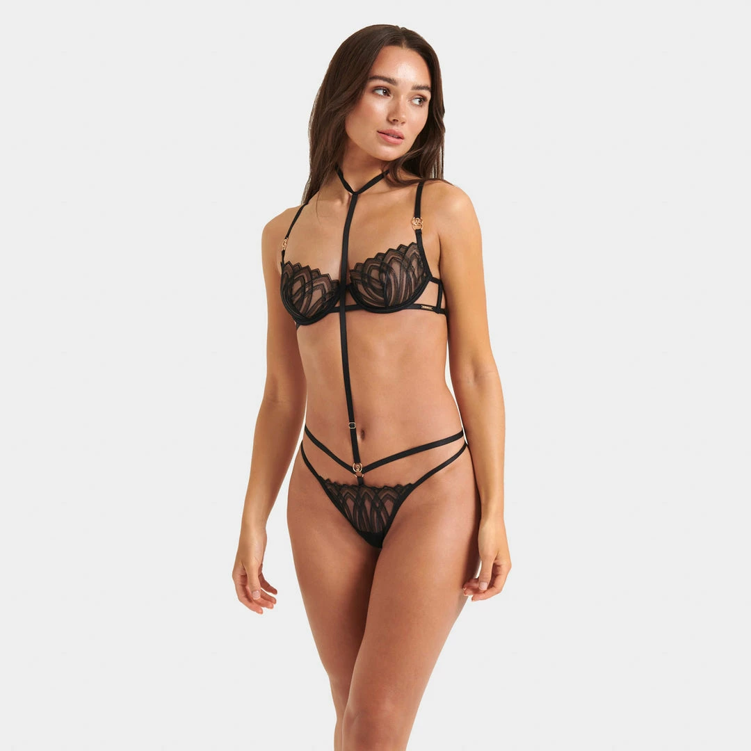 Creating the illusion of layered mesh with its beautifully embroidered cups, the showstopping Lana bra warrants the undivided attention of all lingerie lovers. Complete with supportive wiring and signature gold-tone hardware that secures a distinctively opulent finish, this petal-inspired design is the perfect addition to carefully tailored top-drawer repertoires – especially when styled with the matching Lana thong.