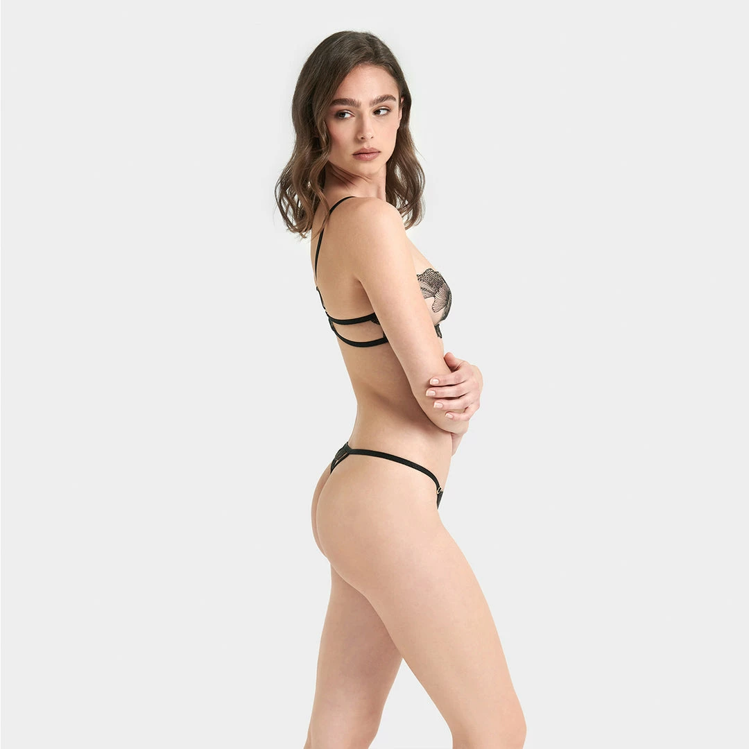 The beauty of the Adeline bra lies in its perfect balance of subtlety and elegance. This scalloped balconette style catches the eye with its intricate embroidery and seductive, semi-sheer structure that will keep things interesting every time you slip it on. Complete the look by styling this feminine number with the matching Adeline brief or thong.