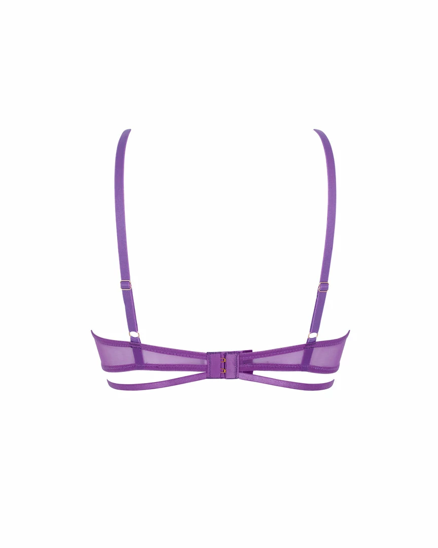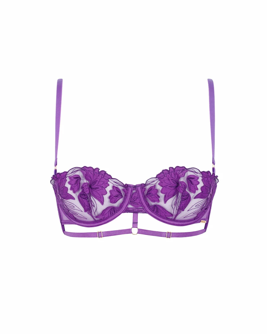 Live your life with pride this and any other season, wearing pieces from our exclusive collection designed in celebration of Pride 2022. We donate 10% of profits from the sales of this piece to OutRight Action International in support of their crucial work for the LGBTIQ+ communities. The Isla bra showcases a romantic vision in striking purple, emphasised boldly by intricate floral embroidery. Supported by elegant, thin straps and gold-tone hardware, this elegant option feels most at home styled with matching pieces from the Isla collection.