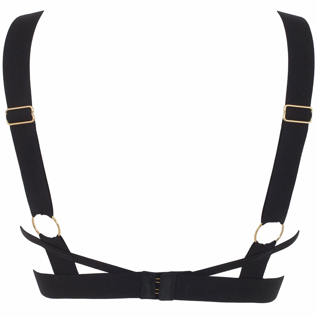 Thick, directional straps are the name of the game on the Sutton bra. Exuding confidence and attitude from its every inch, this daring design provides plenty of support with an underwired structure and adjustable straps. Our signature glamorous touch is not lost in this striking option, shining through the polished, gold-tone hardware that anchors the piece in place.