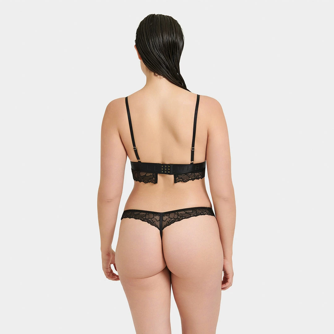 Elegance, comfort and sustainable materials meet in the Tori bralette from our Everyday collection. This distinctively feminine piece features intricate lace balanced with wide, branded straps for a look that’s equal parts chic and contemporary. Our signature gold-tone hardware ties the design together with a glamorous touch. Don’t forget to style it with the matching brief or thong from the collection for a perfectly coordinated final look.
