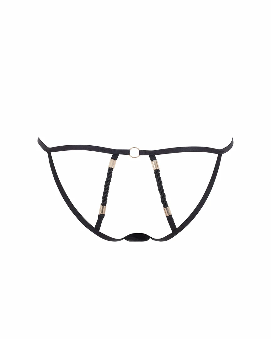 The perfect design to explore your provocative streak in, the Valerian open-back brief is a bold piece that lends a daring edge to your lingerie pairings. As the name suggests, this number features an Ouvert back, as well as eye-catching straps, gold-tone hardware and a soft bamboo gusset for comfort. For a look that’s both unique and impactful, style the brief with the matching Valerian pieces.