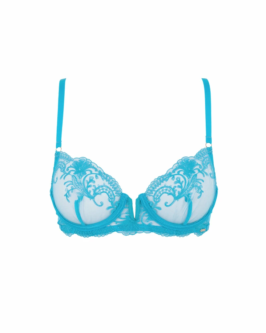 Offering a masterclass in intricate embroidery, it’s easy to see what makes the Marseille bra the absolute bestseller. This classic piece achieves a distinctively alluring look thanks to its perfectly executed mixture of conceal-and-reveal elements, while the gorgeous blue hue ensures that it appeals to those not afraid to experiment with their lingerie choices. Style with other Marseille designs for a look that spells out confidence from afar