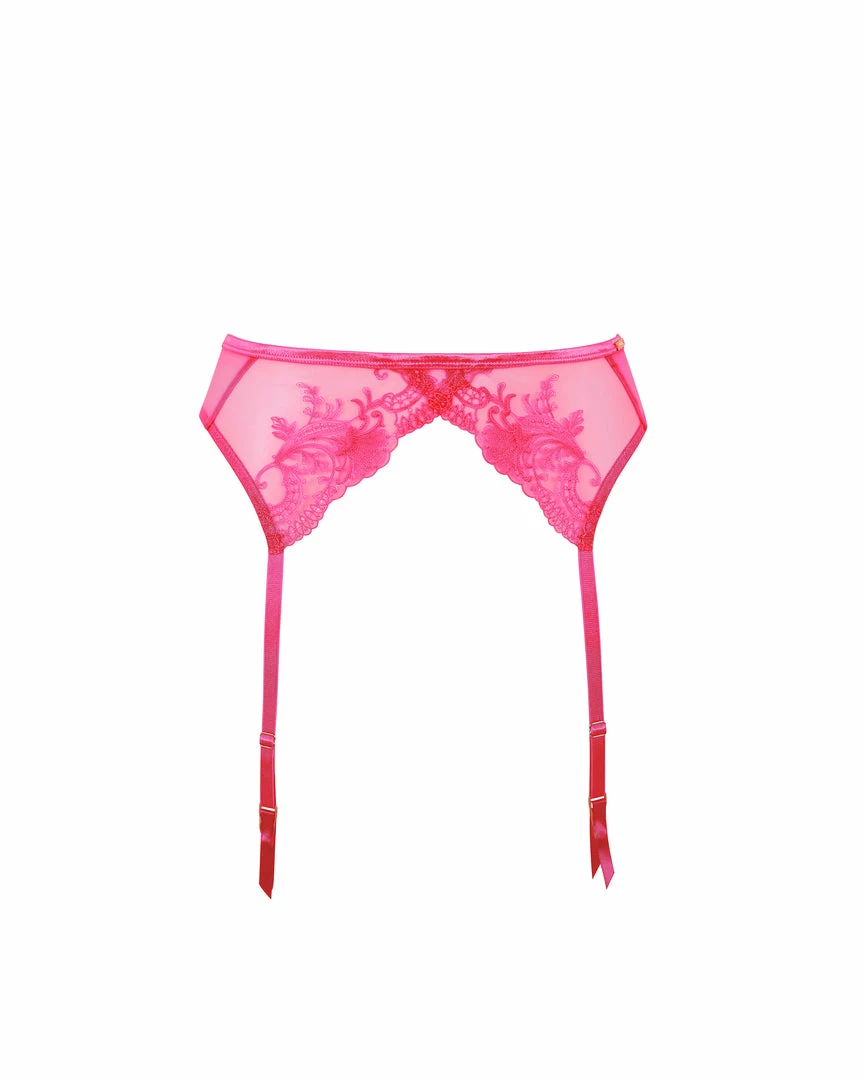Updated in pretty pink to liven up your edit with some extra confidence, the Marseille suspender boasts the same intricate floral embroidery that distinguishes our best-selling collection. Sculpting the waist and securing at the back with hook-and-eye fastenings, this fanciful option becomes a daring power piece when styled with the Marseille bra and briefs.