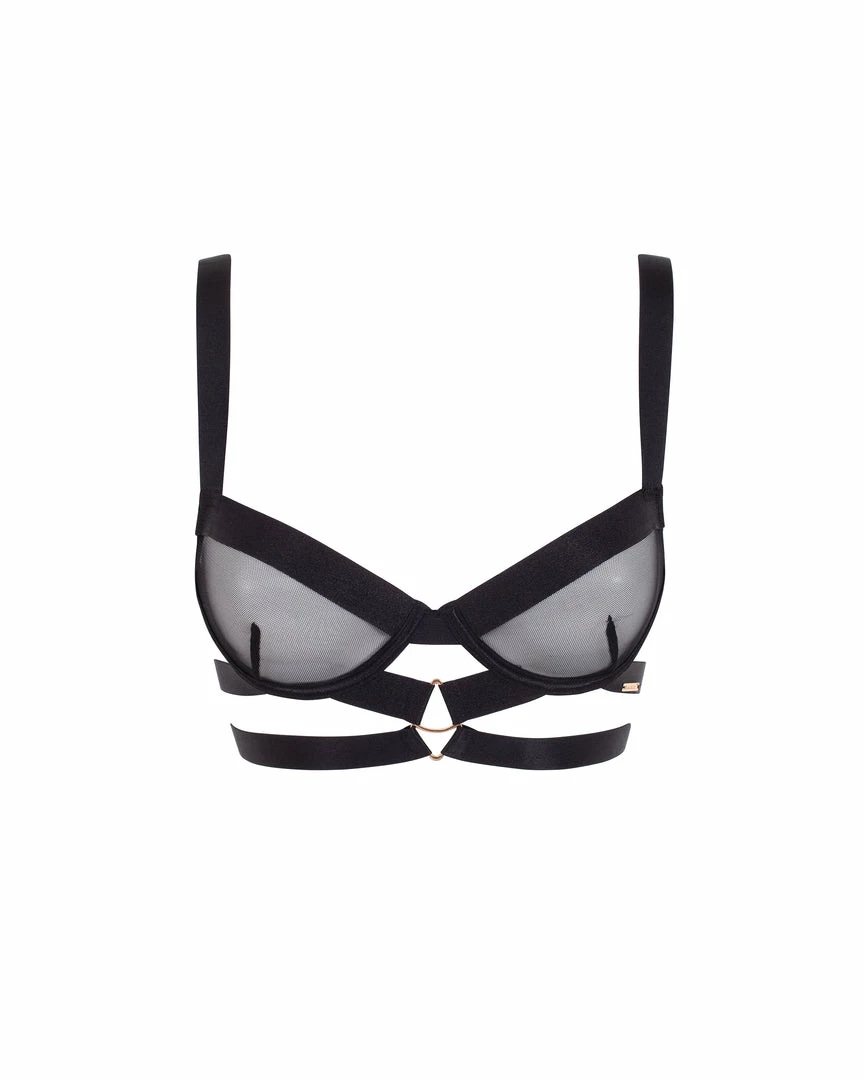 Minimal yet able to leave an unforgettable impression, the Miriam bra delivers a contemporary display of wide, directional straps that flatter your shape. Elevated further with Bluebella’s signature gold-tone hardware, this clean-lined style radiates confidence and seduction from afar. Why not experience the full strappy fantasy and pair it with the matching pieces from the Miriam collection