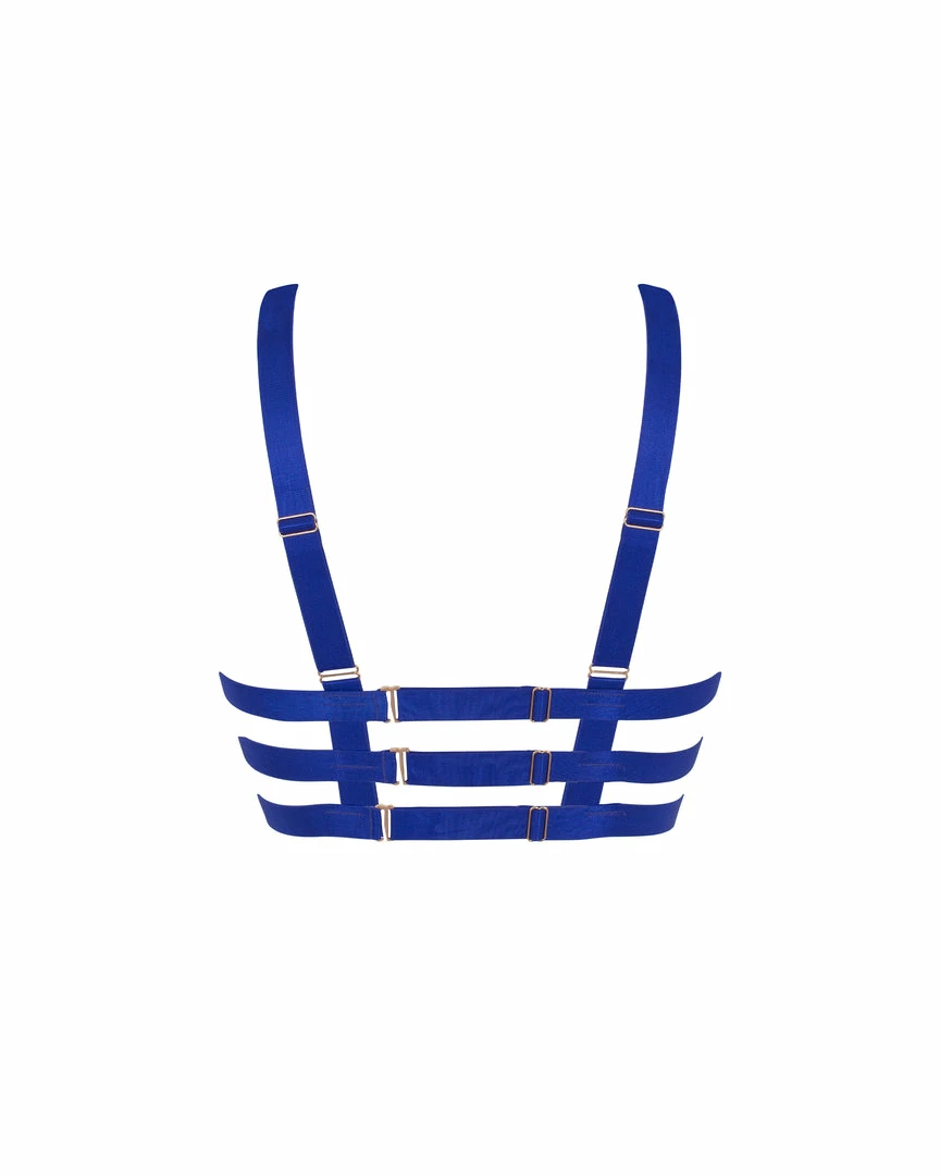 Minimal yet able to leave an unforgettable impression, the Miriam bra delivers a contemporary display of wide, directional straps that flatter your shape. Elevated further with Bluebella’s signature gold-tone hardware, this clean-lined style radiates confidence and seduction from afar. Why not experience the full strappy fantasy and pair it with the matching pieces from the Miriam collection