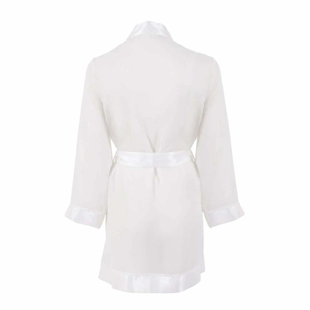 The Bluebella Chiffon Kimono is a must-have item to complete your favourite lingerie looks. Edged with a deep satin trim around the robe and cuffs, the kimono also features a luxurious satin waist tie.