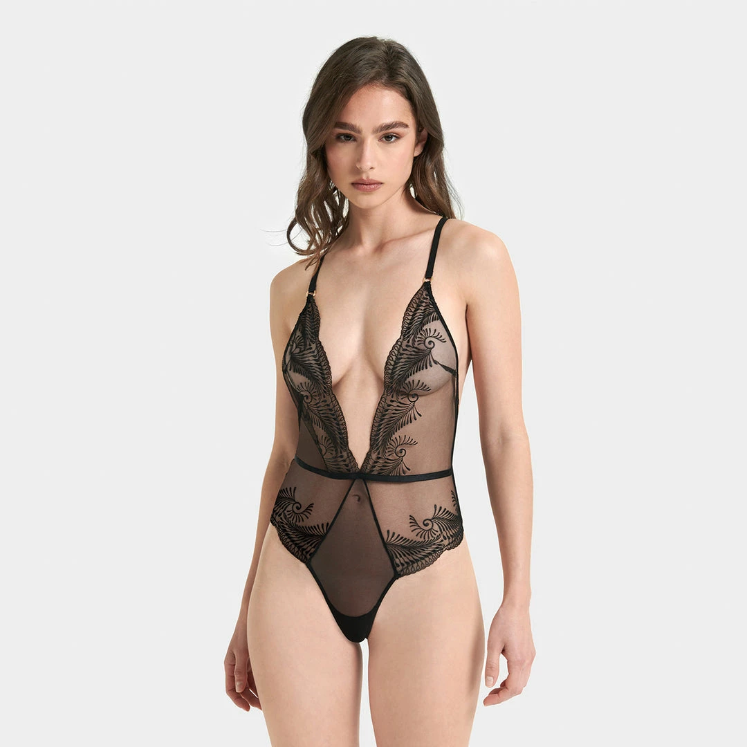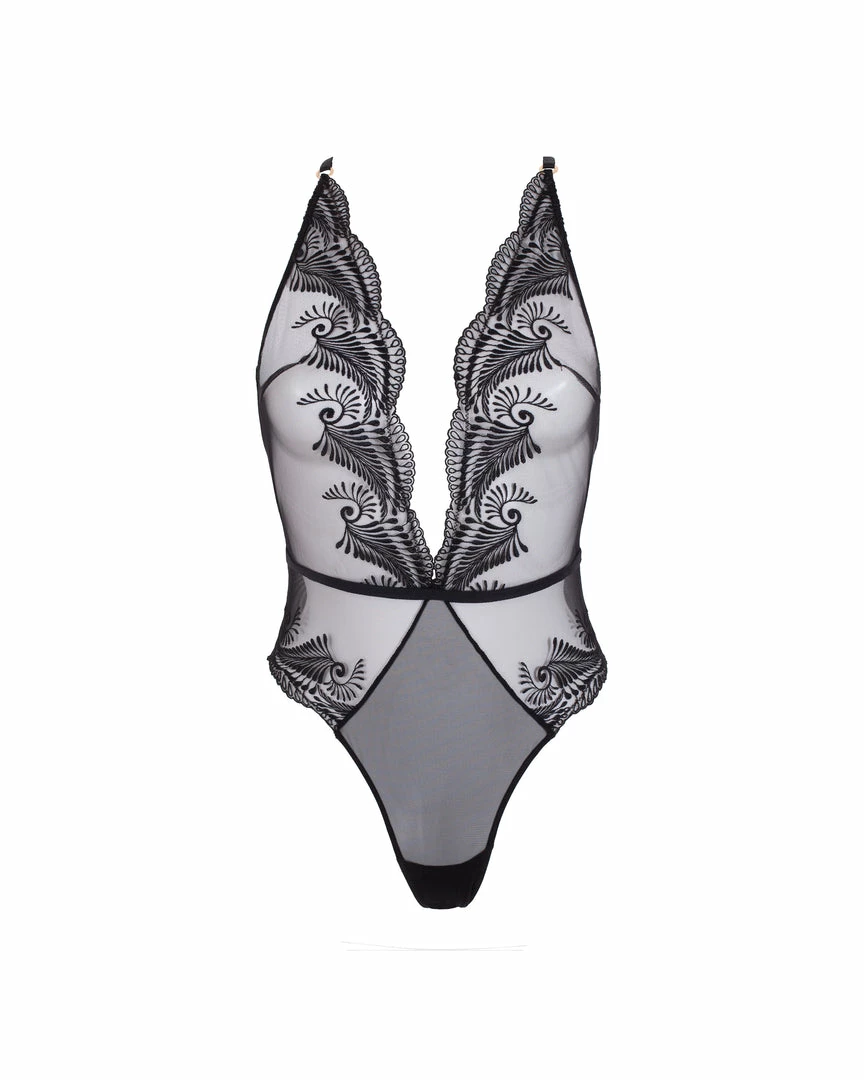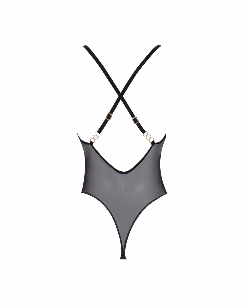 Elegance and art meet in the soft and chic Rafaela body. Lingerie lovers won’t be able to resist the impact of the unique, swirling embroidery and the delicate, semi-sheer mesh creating a perfectly provocative finish. Complete with gold-tone hardware and sleek criss-cross straps to the reverse, the Rafaela is a romantic option that guarantees to set pulses racing.