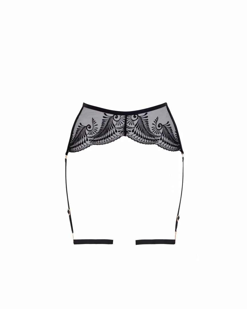 Elegant and provocative at once, the Rafaela thigh harness brings a seductive edge to your lingerie look. Featuring delicate straps and ornate embroidery that beautifully frame your silhouette, this fashion-forward option leaves a lasting impression whenever you decide to slip it on. Style it with the rest of the Rafaela collection, or try adding to your favourite bra and thong duo.