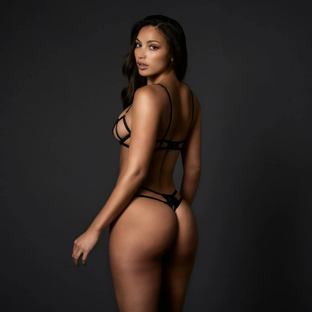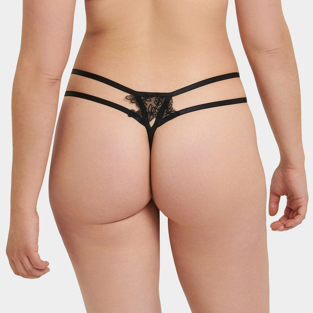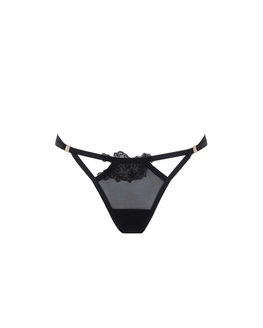 Teasing the eye with its semi-sheer mesh and seductive cut-outs, the Sierra thong is a secret weapon of provocation in your lingerie repertoire. Spotlighting delicate embroidery to the front and reverse, this minimal number is defined by its directional straps that flatter your figure. Style this sultry piece with the Sierra bra for a complete look that exudes confidence and seduction.