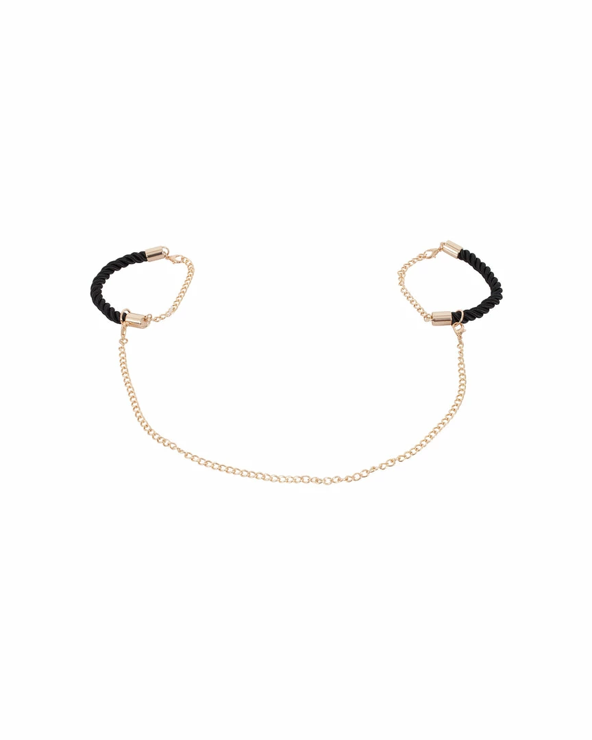 Are you searching for some elegant restraints? Why not try the Valerian cuffs, featuring a polished gold-tone chain and braided straps. This fashionable accessory is sure to deliver a sold dose of provocative spice. Introduce a touch of seductive playfulness to your nocturnal pursuits with this chic pair.